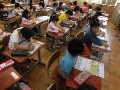 今日は1年生にとって初めてのテストでした。学年・クラス・名前を書くところから,一つずつ確認しながら進めました。