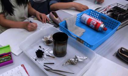 「酸素がなくても燃えるのだろうか」というめあてで,実験をしていました。安全に気を付けて実験しました。