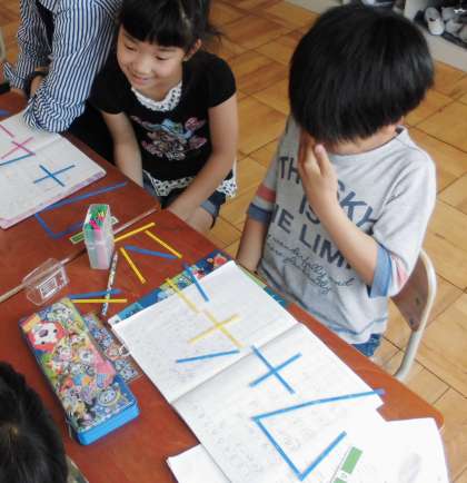 17+4を数え棒を使ってどのように考えたらよいか,話し合っていました。しっかり自分の言葉で発表しています。