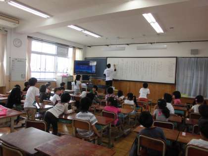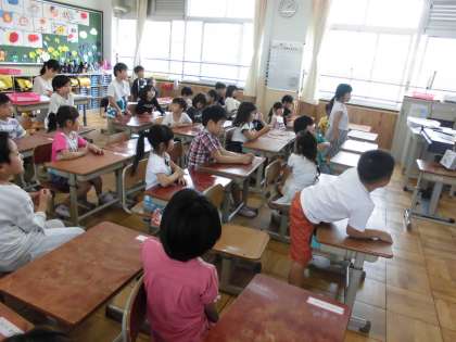 5時間目に,学校探検の振り返りをしました。感想では「2年生に優しくしてもらってうれしかった。」また3〜6年生の教室も通ったので,「お兄さんやお姉さんがかっこよく勉強していました。」などみんなでたくさん感想を交流しました。
