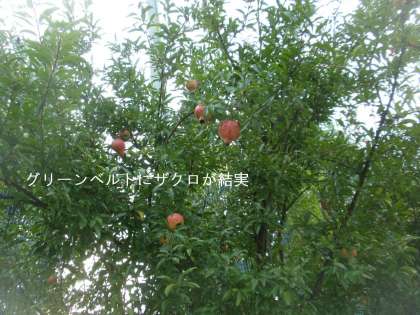 グリーンベルトにある「ザクロ」の木も結実して今にもはち切れそうになっています。