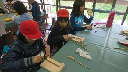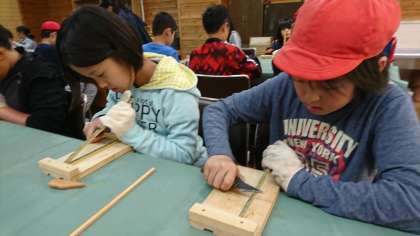 今日の昼食から使う、世界に1つだけのマイ竹箸づくりに取り組んでいます!