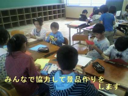 その後の景品作りなどの準備の時間では、6年生が手本となって