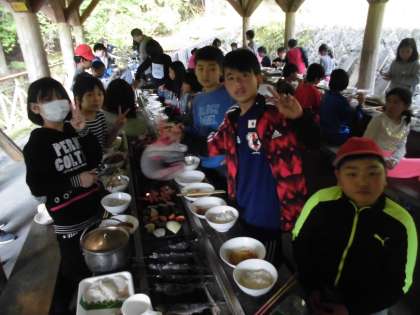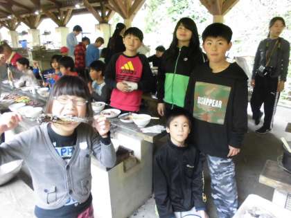 焼く人,食べる人,片づける人,いろいろ役割を交代しながら協力して活動しました。