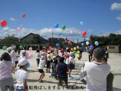 閉会式では,みんなで風船を飛ばして楽しい合同運動会の幕を閉じました。