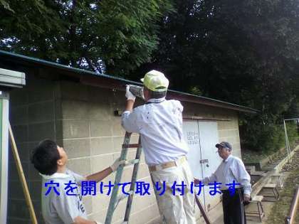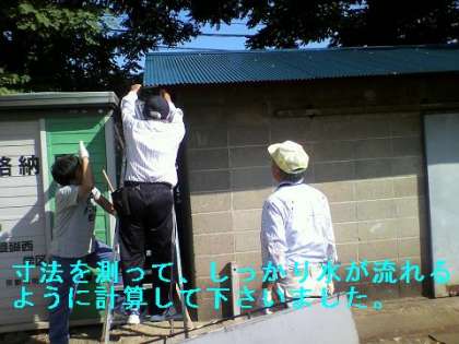 夏休みに体育倉庫の屋根の修理でお世話になった、
