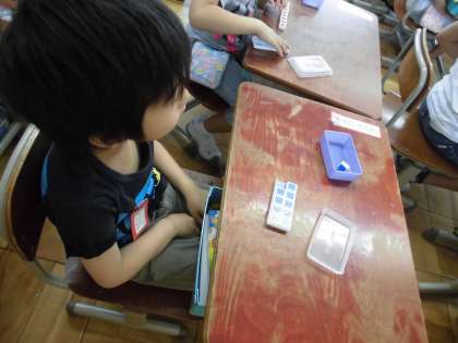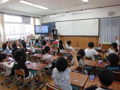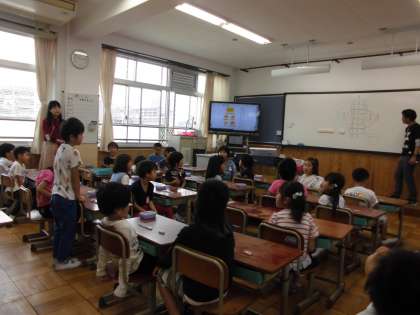お友だちが発表しているときは、きちんとその人の方を向きます。1年生は、聞き方名人が多いですね!
