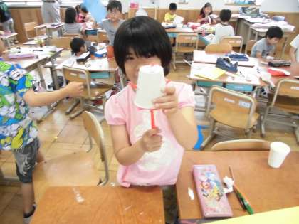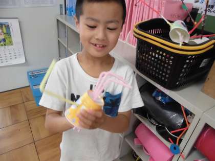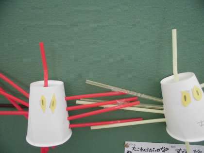 ストローを使っておもしろい作品がたくさんできました。ストローをたくさん繋げたり,いろいろなところにさしたりと,一人ひとりの個性が輝いていました。