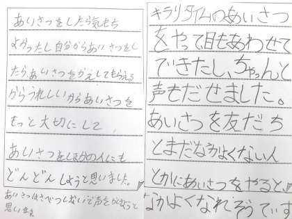 楽しくあいさつに取り組む中で,子どもたちの中でも気づくことがあったようです。よりよく友だち関係や人間関係を広げていけるようにあいさつを続けていけるといいですね。また,ご家庭でもあいさつについての取組を聞いてあげていただけたらと思います。