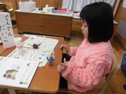 けん玉やこま、ネックレスや楽器など、どんぐりを使っていろいろなものを制作しました。