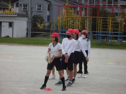 体育館や運動場でボールをうまく運んだり、投げたりするコツを教えていただきました。