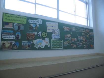 ジョナ先生は、授業だけではなく、階段の踊り場に掲示をしてくださっています。