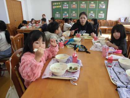 そして、食の学習の日にはランチルームで楽しく給食をいただきます。