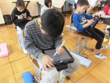 タブレットを使ってふり返りをして、提出します。