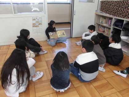 今日は、なんと、5・6年生による読み聞かせです。