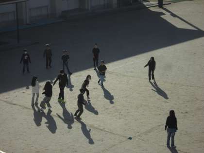 2学期をふり返った後は、外に出て、みんなで楽しくドッジボールをしました。