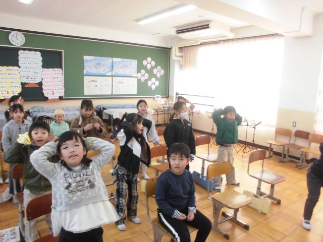 の「さ」のところで手をたたいたりジャンプをしたり立ったり。