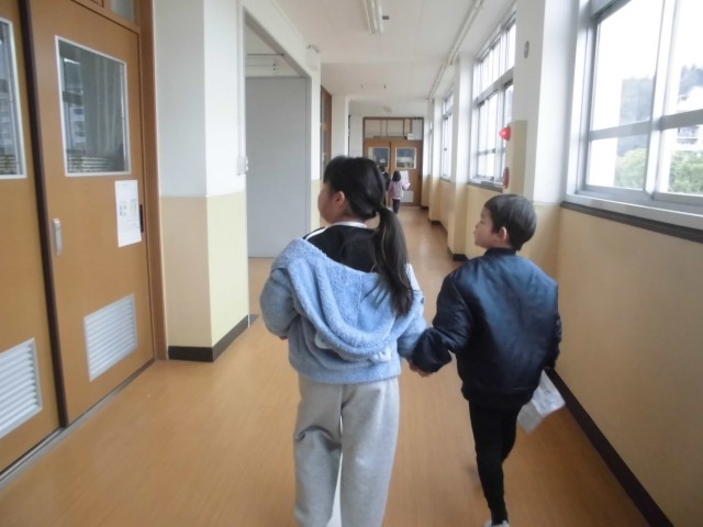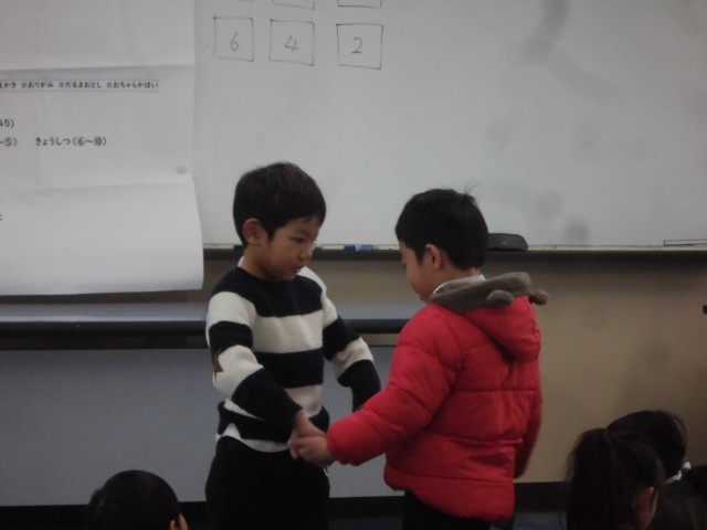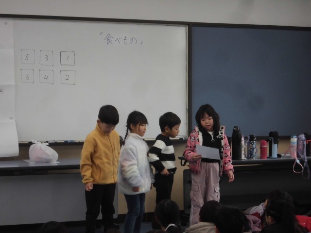 1年生は、先週から準備を進めていた、中山保育園の年長児さんとの交流がありました。