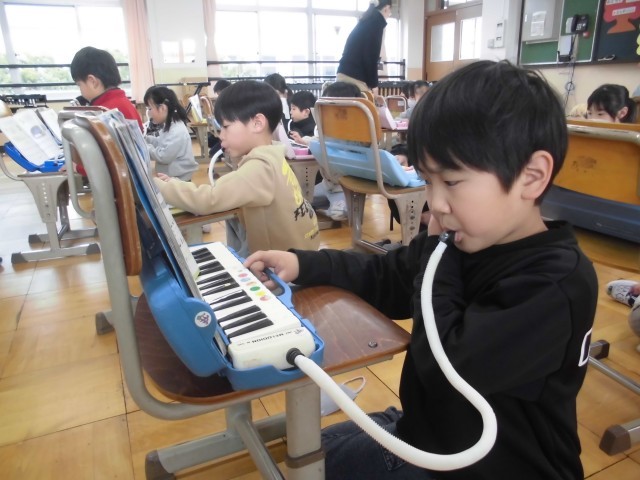 楽譜の一番上の旋律も、鍵盤ハーモニカでじょうずに演奏できるようになりました。