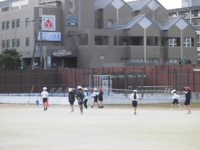 はばとびの前に、走って体を温めました。