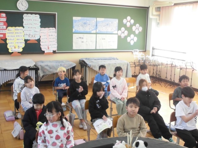 「楽しいね」を元気いっぱい歌い、「こぐまの二月」のくじ引き合奏をしました。