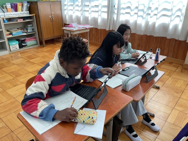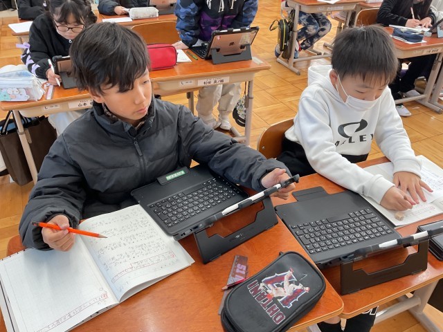 社会科で、警察の仕事について、タブレットやリーフレットを使い調べました。学習を進める中で、「警察ってこんなにもたくさんの仕事があったんだ。」と驚いていました。