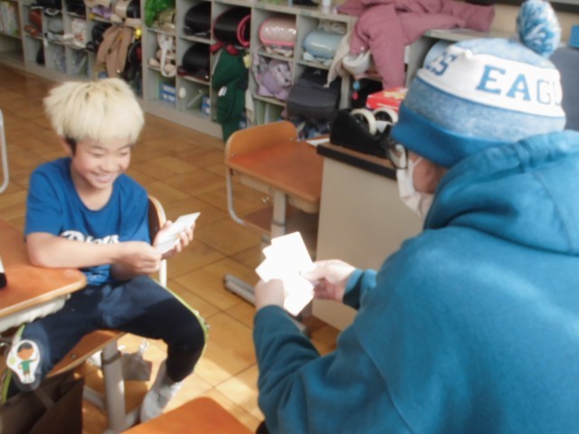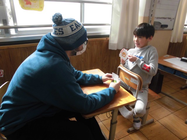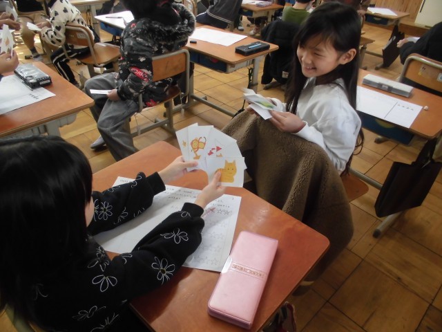 2年生は、英語で好きな動物を伝えて、カードのやり取りをしました。