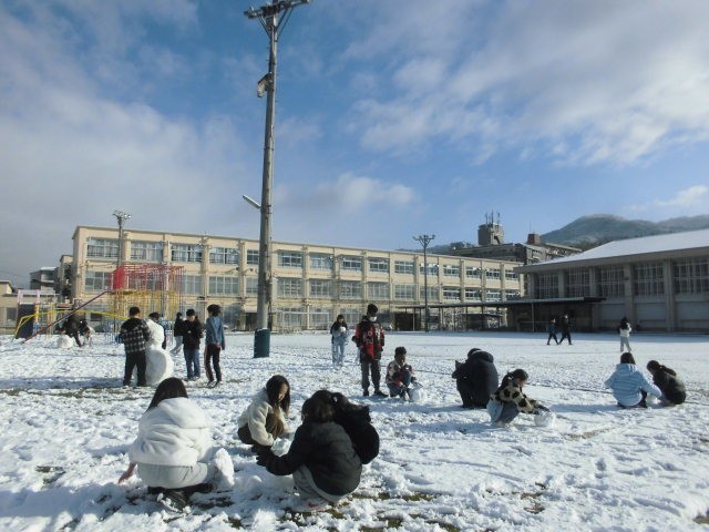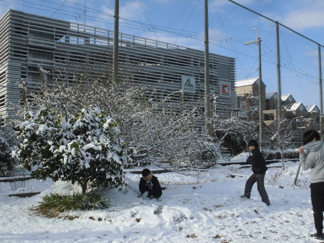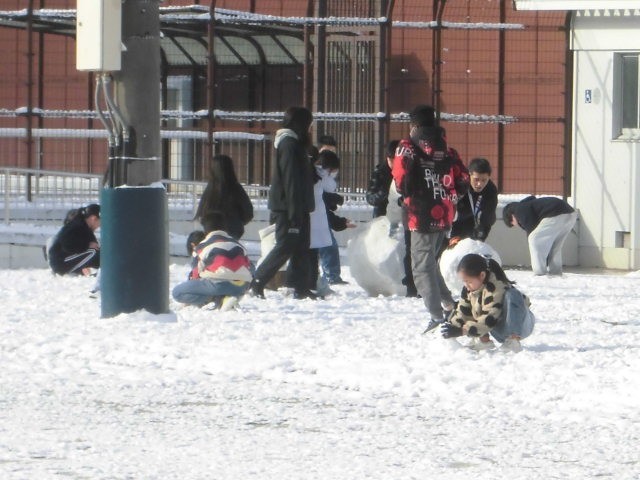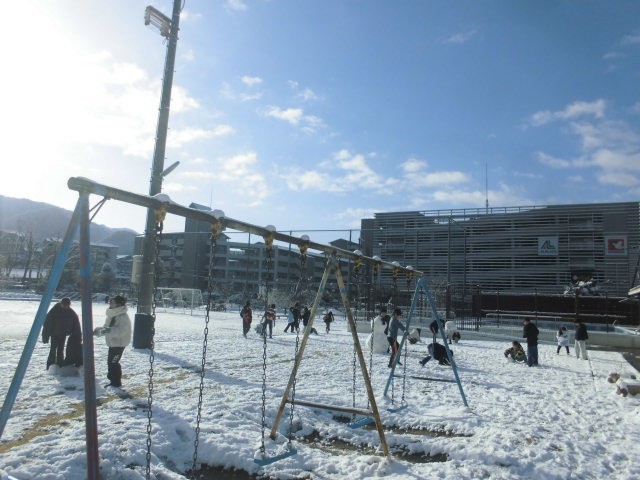 昨日からの雪で運動場は一面の雪に覆われていました。
