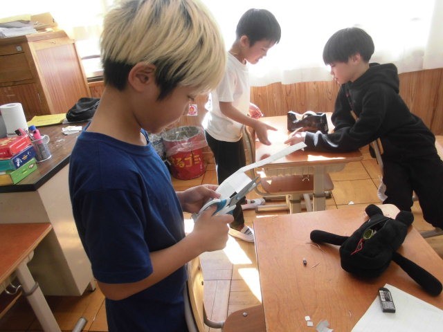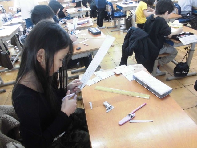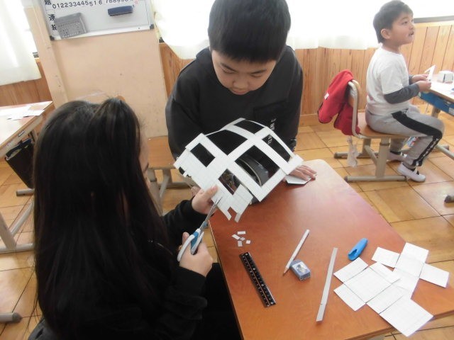工作用紙を使って、はこのかたちを作りました。