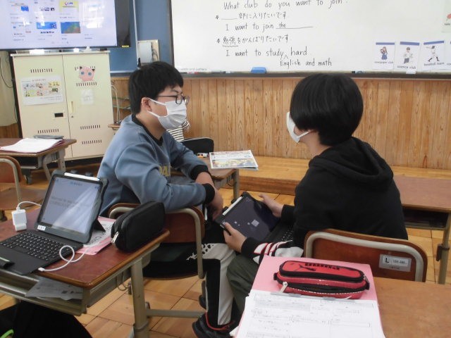 中学校で頑張りたいことを伝え合いました。