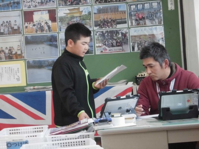プレゼンを示しながら、発表する練習を担任の先生に聴いてもらってアドバイスをもらいました。