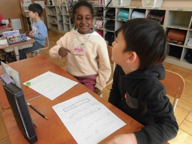これはなんでしょうクイズをペアで考えました。ヒントは4つまで。クイズなので「ひそひそ」2人で静かに考えました。
