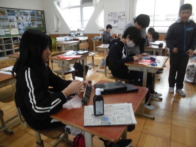 習字を書き終えて、後片付けです。