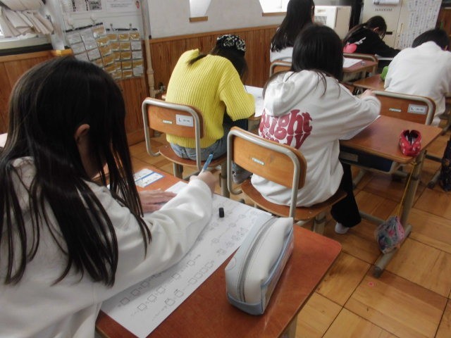 それぞれの目標に合った漢字プリントを選んで、力試しをしました。