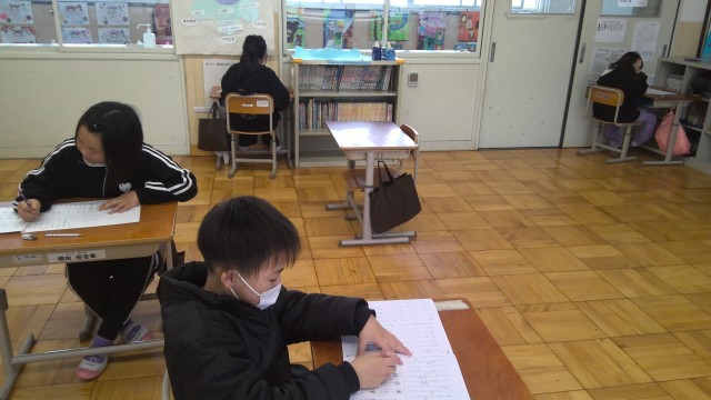 3年生は、漢字力向上の観点から合格・不合格関わらず検定を受けています。合格や最初の検定より高得点を目指し、何度も見直し頑張っていました。