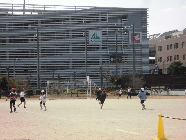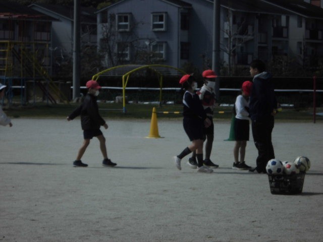 サッカーをする前の準備運動として鬼ごっこをしました。