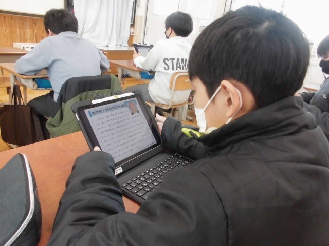 資料から読み取ったことをもとに、分かったことや感じたことをロイロノートでまとめました。