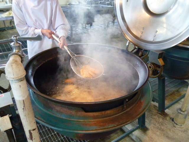 給食室では、調理員さんが一つ一つ丁寧に衣をつけ、心を込めてトンカツを作りました。子どもたちにとっても人気の高い、楽しみにしている献立のひとつです。