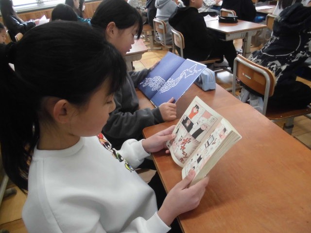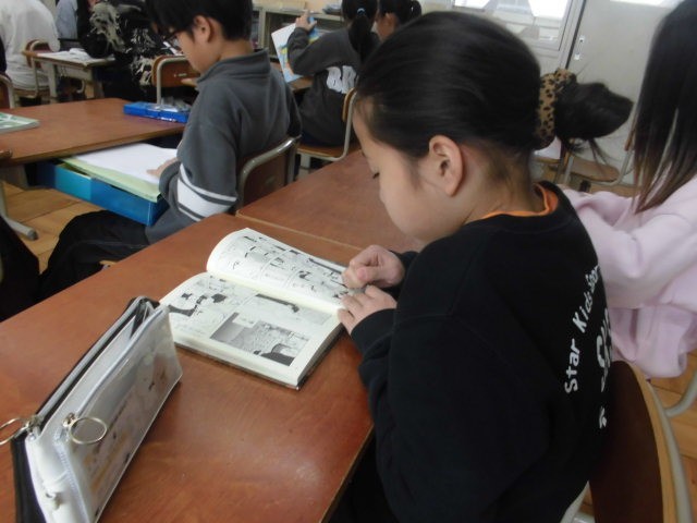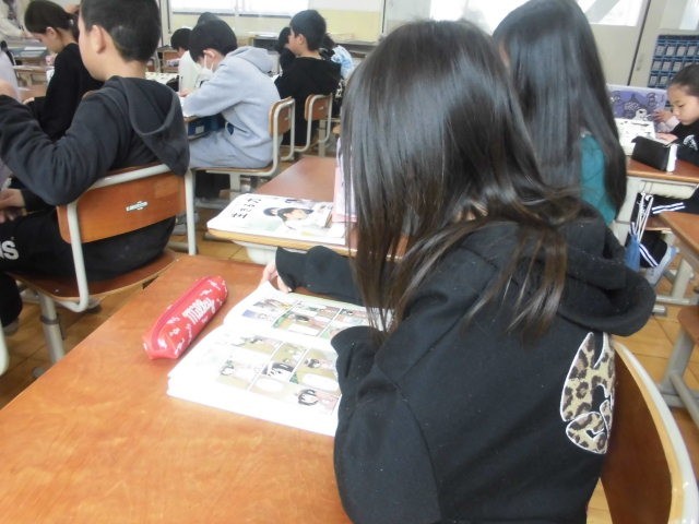 4年生は新聞を作っていました。出来上がった人から読書をしました。