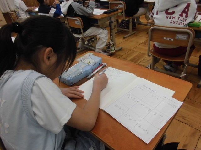 「生き物を見つけよう」で見つけた生き物を出し合いました。