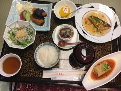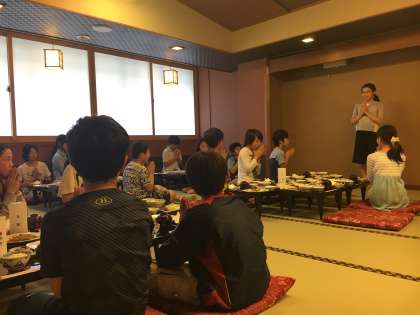みんな待ちに待った夕食です。声を合わせて「いただきます」。残さずしっかりいただきます。