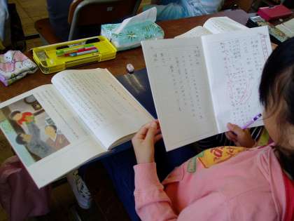 4年生の教室では,国語科の学習で『一つの花』というお話の学習を始めています。今日は,このお話がどんな内容なのかを登場人物や場面設定に着目して,一人でお話を読んだり,グループで話し合ったりしています。
