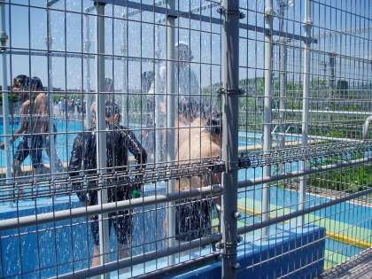 子どもたちは,気持ち良さそうに水の中を歩いたり,走ったりしながら徐々に慣れていました。