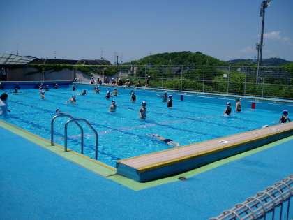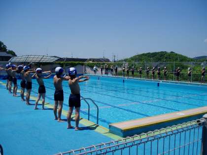 今日の水泳学習は中学年の子どもたちです。午前中にも関わらず,気温が上昇し水温もあがっています。