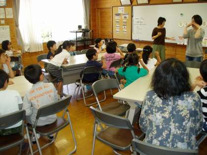 今年度も地域からゲスト・ティーチャーをお招きし,土曜学習で英語活動に挑戦しています。低学年と高学年のグループに分かれて,楽しいゲームや歌を通して英語に親しんでいきます。