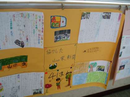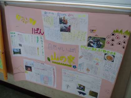 5年生の廊下や教室には,山の家の活動を振り返って作り上げた壁新聞が掲示されています。