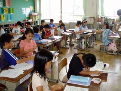 4年生は来週に迫った『みさきの家野外活動』に向けて,しおりを帳合いし完成させていました。