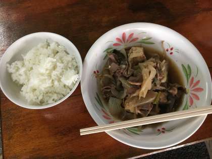 みんなで協力して作った「すき焼き風煮」。美味しくできました。みんな笑顔で「いただきます。」しっかり食べて,片づけもテキパキ…。どの班もチームワークばっちりです。