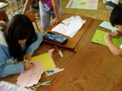 4年生の教室では,先週に実施した『みさきの家野外活動』の新聞づくりに取り組んでいました。