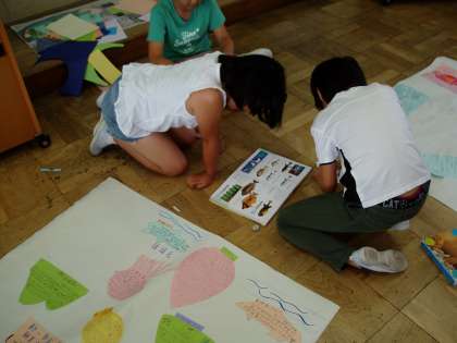 国語科で培った文章表現力や図画工作科で養った表現力を活かして,野外活動の成果を新聞で伝えます。